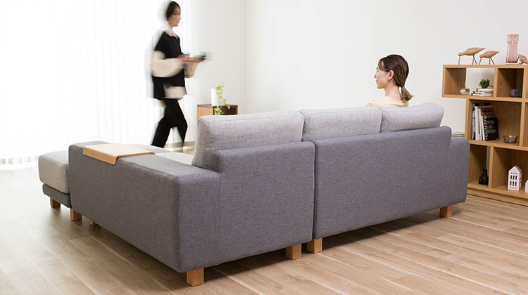 クローバー |シルバーグレー×フレンチグレー|6cm角脚ブラウン部屋の間仕切り配置でも効果的