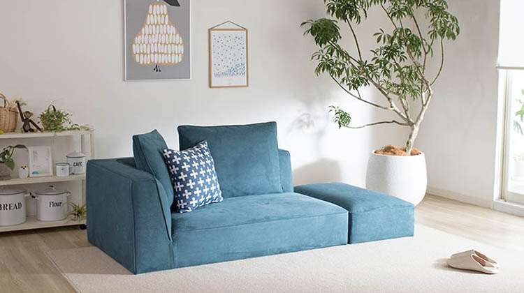 VANILLA COUCH [右ひじ] 奥行き87cm | ターコイズオットマンと合わせても190cmのサイズ
